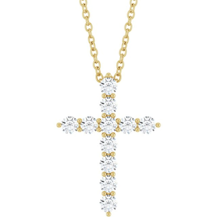 R42359 / Necklace / Set / 14K Yellow Gold / Round / Lab-Grown Diamond / 17.8 X 12.9 Mm / 2.2Mm :: 3/8 Ctw / Si1-Si2, G-H / 16-18 In / Polished / 3/8 Ctw Lab-Grown Diamond Cross Necklace