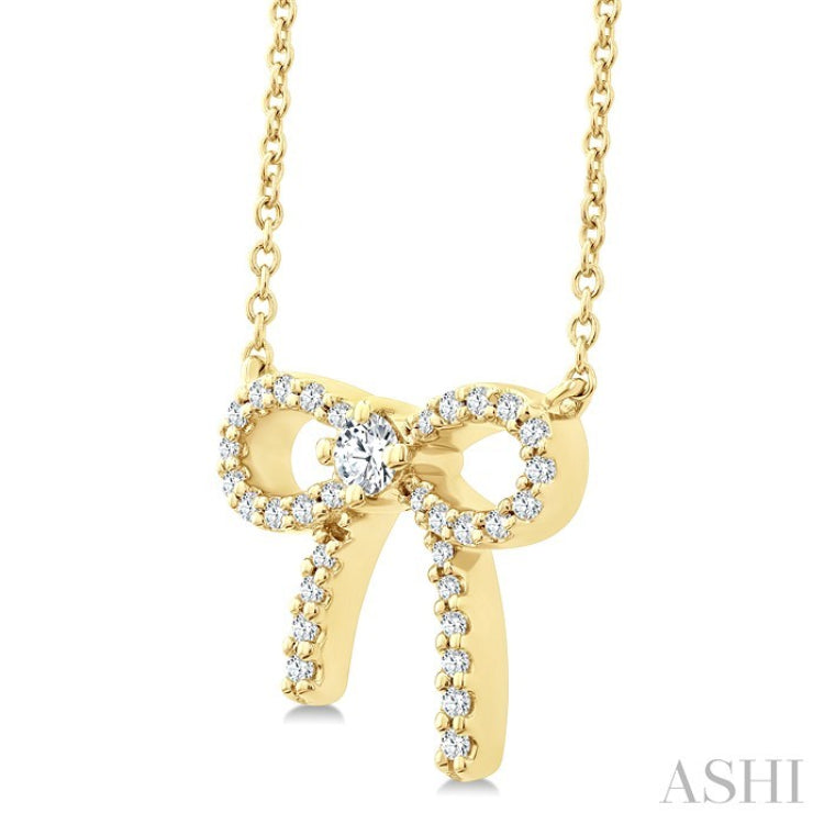 1/5 Ctw Bow Round Cut Diamond Petite Fashion Pendant With Chain in 10K Yellow Gold