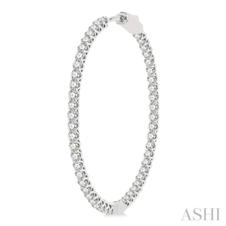 4 Ctw Inside-Out Round Cut Diamond 1 1/2 Inch Hoop Earrings in 14K White Gold
